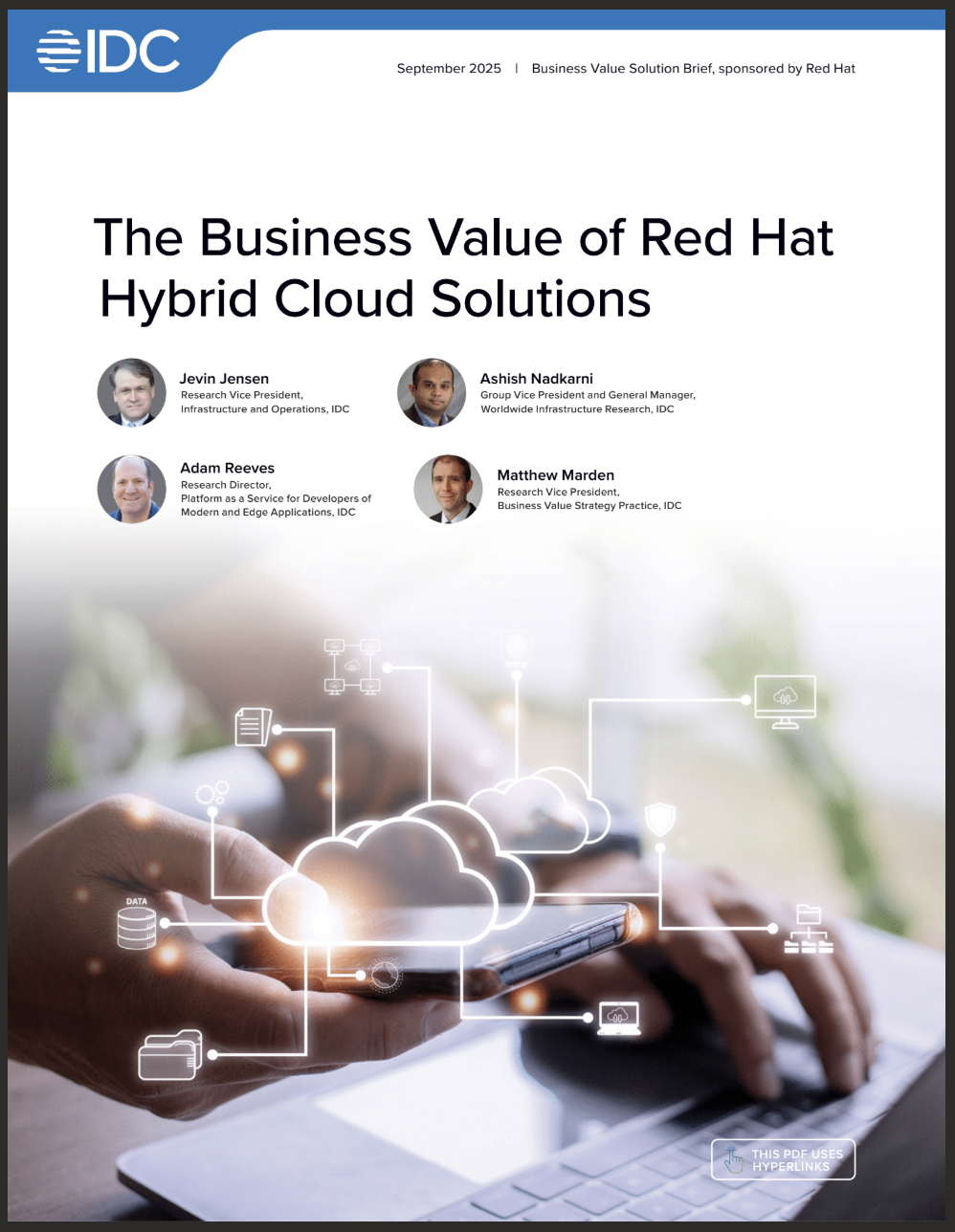 Learn how organizations realize business and IT value and operational efficiency by using Red Hat Enterprise Linux, Red Hat Ansible Automation Platform, and Red Hat OpenShift in their hybrid cloud environments.
